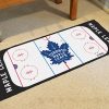 The ice might be cool but these hockey Rink Runners are red hot! Rink Runners are look like an actual hockey rink and feature the team logo in the middle and team name behind the nets. Made in U.S.A. with 100% nylon carpet and non-skid recycled vinyl backing. Machine washable; vacuum regularly and spot clean for any easy and quick clean. Chromojet printed in true team colors.